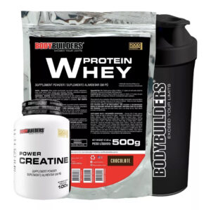 Kit Whey 500g, Creatina 100g e Coqueteleira Bodybuilders